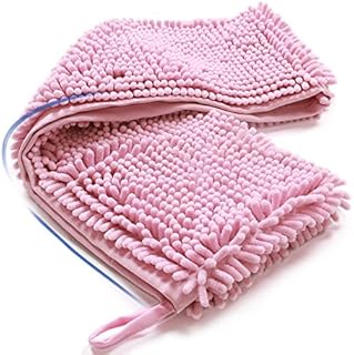 LanSam® 【超吸水力速乾抜群 ペット用 タオル】犬猫兼用ペット用品 マイクロファイバー 手入れポッケト付き ペットバスタオル 体拭き タオル(80x35CM ピンク)