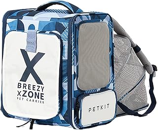 PETKIT 猫用キャリーバッグ 拡張機能を備え ペット用 通気性 折り畳み式 ポケット付き 負担軽減 お出かけバック 通院 散歩 旅行 小型犬用 軽量 (ブルー)