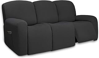 PureFit スーパーストレッチ 3人掛けリクライニングチェア ソファ カウチカバー ポケット付き – ノンスリップソフトソファスリップカバー 洗濯可能 スパンデックス リクライニング家具プロテクター 子供/ペット用 (リクライニングソファ、ダークグレー)