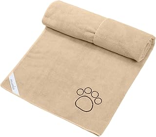 DELLEPICO マイクロファイバー 大判サイズ(60cmx115cm) 超吸水 速乾 ペット用 タオル 犬 猫 水遊び シャワー シャンプー後 体拭き ドライヤ時間短縮 4カラー (ベージュ)