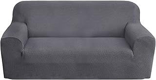 HARBOREST ソファーカバー 1ピース ストレッチソファスリップカバー 家具プロテクター ポケット付き 子供用 ペット用 ジャカード織 小さなチェック柄 ゴム底付き(3人掛け、ダークグレー)