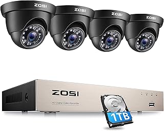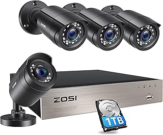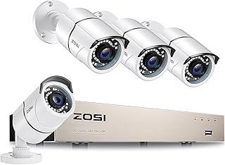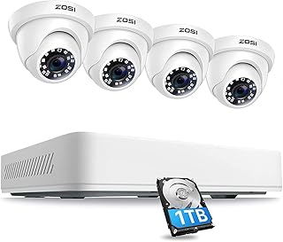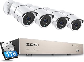 ZOSI CCTV 防犯カメラ監視カメラ 500万画素8CHデジタルレコーダー+4台500万画質カメラ アラーム通知 赤外線LED 暗視対応 防水防塵 スマホ パソコン遠隔監視 常時録画 モーション感知対応 HDD1TB付き