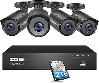 ZOSI 防犯カメラ監視カメラ 200万画素防犯カメラ 1080P H.265+デジタルレコーダー アナログ AHD CVI TVIカメラ対応 赤外線LED 暗視対応 防水防塵 モーション感知対応 アラーム通知 スマホ/パソコン遠隔監視 (8チャンネルレコーダー+黒い弾丸カメラ4台+ハードディスクなし)