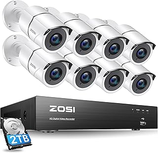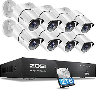 ZOSI 230万画素 防犯カメラ 8台セット フルハイビジョン 高性能 ミニ AHD防犯レコーダー 8台防水カメラ モーション検知録画 スマホ/パソコン遠隔監視 屋内外設置 HDD2TB付き