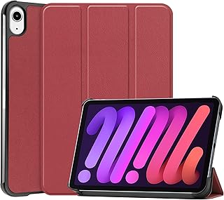 iPad mini 6 ケース iPad mini (2021年 第6世代 8.3 インチ) レザーケース 【ELMK】軽量 薄型 PU レザー スマート カバー 耐衝撃 傷防止 クリア ハード 背面 ケース 三つ折り スタンド オートスリープ ウェイクアップ 機能 iPad mini6 対応 (ワインレッド)