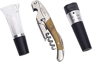 Daitban【 3点セット】ソムリエナイフ ワインオープナー ボトルストッパー ボトルポアラー付き ワインボトル栓 シーラー プラグ コルク抜き コルクスクリュー 多機能ナイフ
