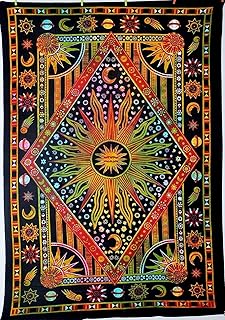 タイダイ サイケデリック 天体 太陽 月 タペストリー ボヘミアン タペストリー 壁掛け 寮 装飾 ボーホー タペストリー / ヒッピー タペストリー ビーチ ベッドカバー カーテン (ツイン (約54 x 84インチ、オレンジマルチカラー)