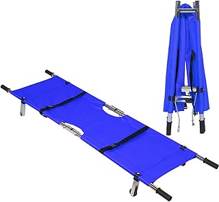 MOMAKQ 折りたたみ 担架 スチール製 防水 簡易担架 軽量 コンパクト 防災 ストレッチャー キャスター付き ベルト付き 二つ折り 防水 滑り止め 救護用 搬送 介護用品 緊急 非常用