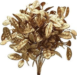 PASYOU フェイク植物 金色の葉 花 デコレーション クリスマス用 人工芝 プラスチック 人工芝 屋外 屋内 ガーデン パーティー 部屋 寝室 オフィス ウェディング テーブル センターピース DIY 装飾 ゴールド 2個パック