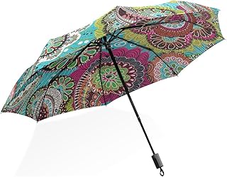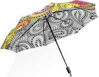 HMWR(ヒマワリ) ビンテージ レトロ クラシック 復古風 優雅 エレガント ボヘミア ペイズリー柄 カラフル 水彩画 レディース 女性用 女の子 三つ折り傘 折りたたみ傘 耐強風 軽量 撥水性 大きい 手動開閉 雨傘 日傘 晴雨兼用 携帯用 かさ