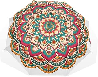 HMWR(ヒマワリ) ビンテージ レトロ クラシック 復古風 民族風 優雅 エレガント ボヘミア 曼荼羅 円形 花柄 和柄 和風 レディース 女性用 三つ折り傘 折りたたみ傘 耐強風 軽量 大きい 手動開閉 雨傘 日傘 晴雨兼用 収納ケース付 携帯用 かさ