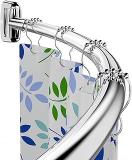カーブしたシャワーロッド 45~75インチ 防錆カーブシャワーカーテンロッド バスルーム用 調節可能 ステンレススチール 高耐久 余裕のあるスペース ドリル必要 クロム