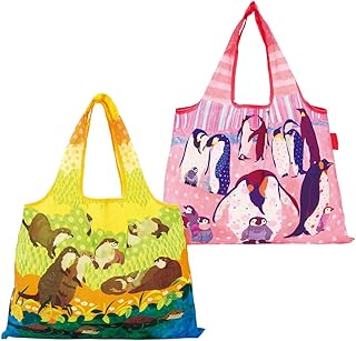 (プレーリードッグ) PRAIRIE DOG 吉田未玲 デザイン エコバッグ 2個セット 折りたたみ 大容量 (カワウソの森×ペンギンの集会)