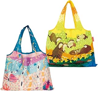 (プレーリードッグ) PRAIRIE DOG 吉田未玲 デザイン エコバッグ 2個セット 折りたたみ 大容量 (チンアナゴ×カワウソの森)