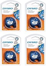 DYO LTプラスチックテープカセット 91331 LetraTagラベルメーカー用 簡単にロードできるカセット入り 1/2インチ×13フィート 白地に黒 4個パック