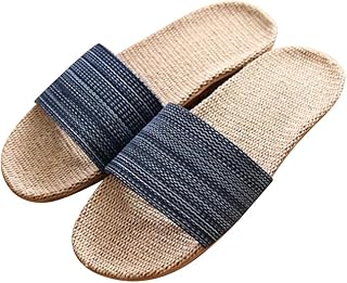 麻 サンダル スリッパ レディース メンズ ルームシューズ 春夏 室内履き 静音で軽量 リネンスリッパ ベーシック 可愛い 滑り止め 洗えるスリッパ 通気性 来客用 部屋用 ギフト(ネイビー,26.5 cm)