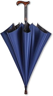 Sontu 松葉杖傘 二合一 杖傘 ステッキ傘 歩行杖傘 アウトドア スキッド機能付き登山傘 滑り防止 防風 高齢者に 贈り物 ギフト 手動 杖傘分離可能 木製ハンドル (ネイビー)