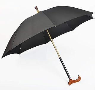 Sontu 松葉杖傘 二合一 杖傘 ステッキ傘 歩行杖傘 アウトドア スキッド機能付き登山傘 滑り防止 防風 高齢者に 贈り物 ギフト 手動 杖傘分離可能 木製ハンドル (ブラック)