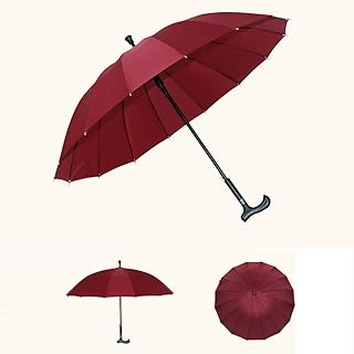 Sontu 松葉杖傘 2-in-1 ステッキ兼用 長傘 ステッキ傘 歩行杖傘 アウトドア 滑り止め 登山傘 滑り防止 高齢者に 贈り物 ギフト (ワインレッド)