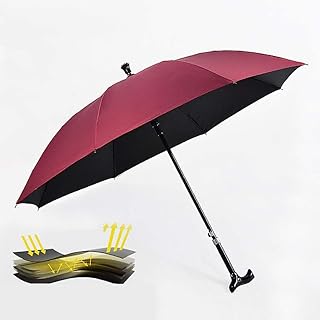 Sontu 松葉杖傘 2-in-1 杖傘 ステッキ傘 歩行杖傘 アウトドア スキッド機能付き登山傘 滑り防止 防風 高齢者に 贈り物 ギフト 高度調節可能 紫外線保護 (ワインレッド)